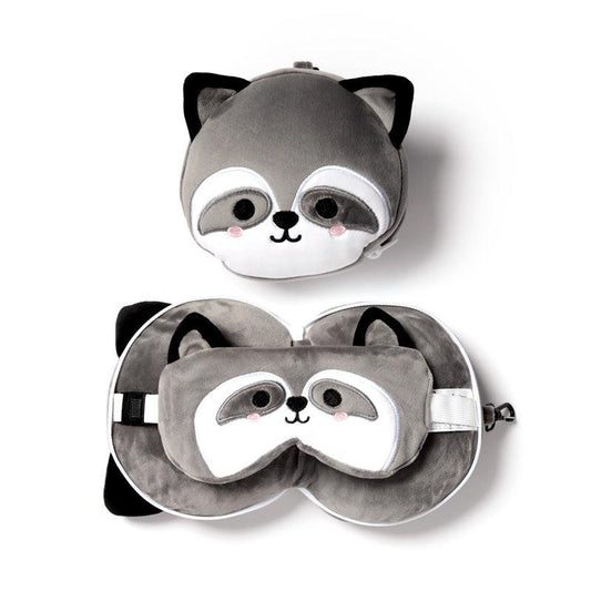 Raccoon Relaxeazzz Plush Round Travel Pillow & Eye Mask Set