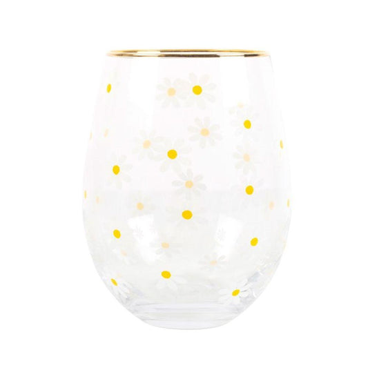 All Over Daisy Print Stemless Wine Glass