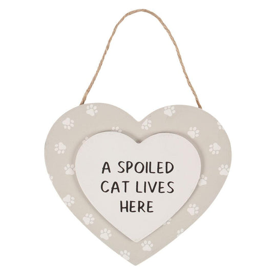 A Spoiled Cat Lives Here Hanging Heart Sign
