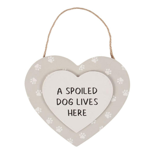 A Spoiled Dog Lives Here Hanging Heart Sign