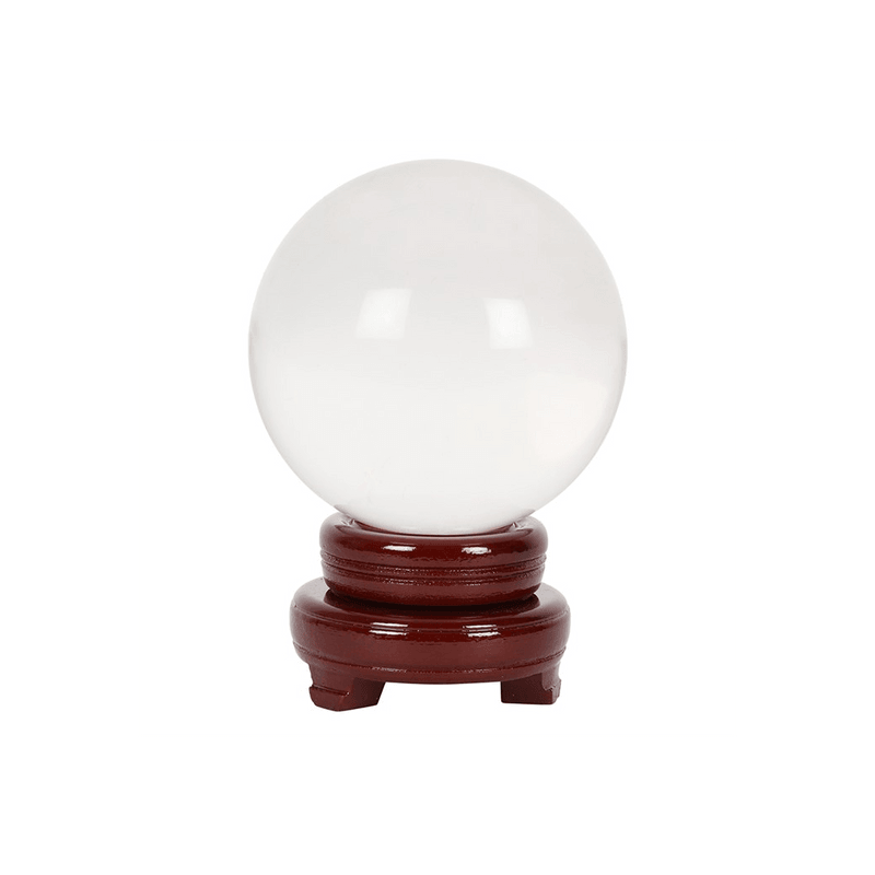 This small crystal ball is 13cm in diameter and comes with a small wooden stand and a display box. Product Dimensions: H18.5cm x W13cm x D13cm Packaged Dimensions: H15cm x W24.3cm x D17cm
