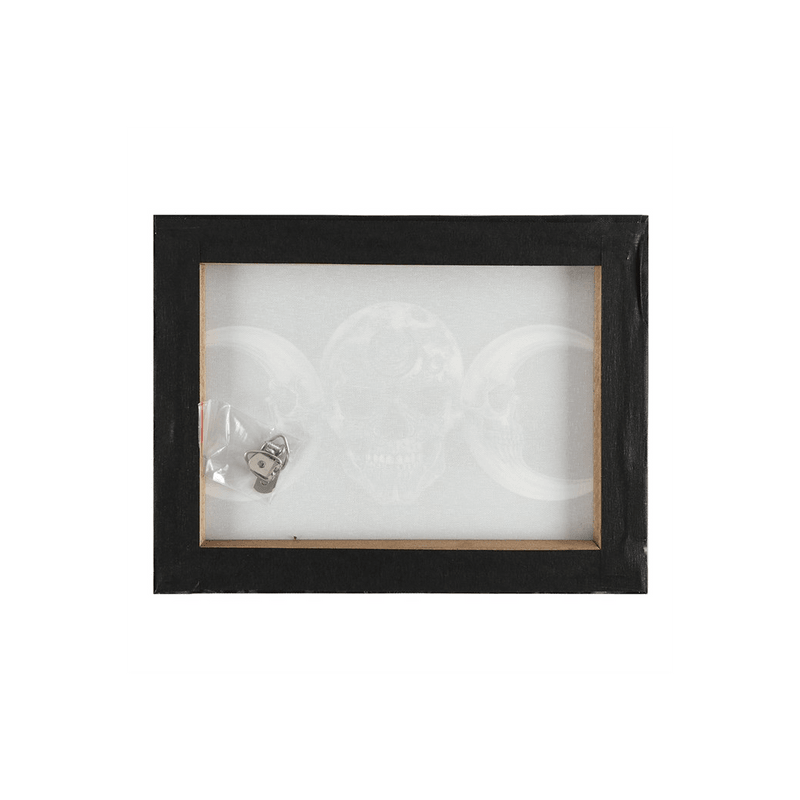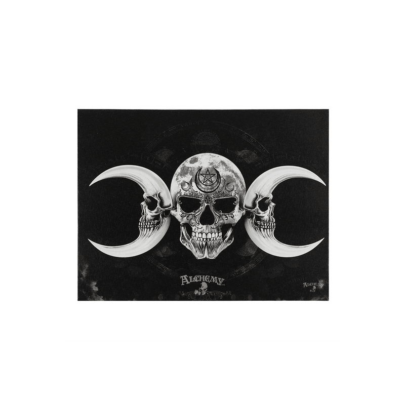 This small canvas plaque features the detailed 'Dark Goddess' artwork by the popular Alchemy Gothic of London. This amazing greyscale piece features a triple moon design made up of human skulls. 19x25cm. The digital watermark will not appear in the print design. Product Dimensions: H25cm x W19cm x D1.5cm Packaged Dimensions: H25cm x W19cm x D1.5cm