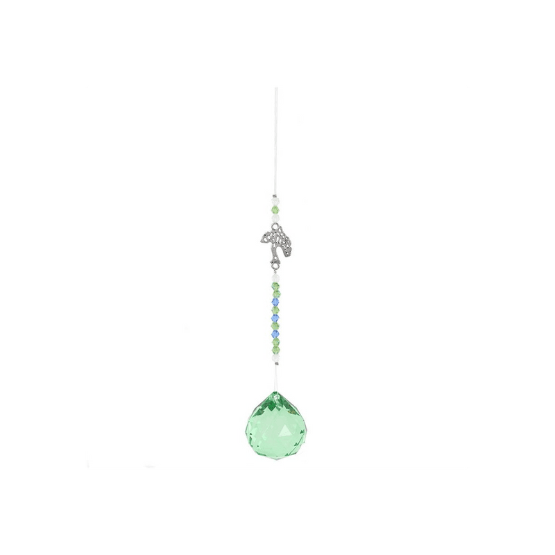 This beautiful hanging green crystal features a silver-effect Tree of Life charm. The Tree of Life is a popular symbol in Pagan culture and religion and represents growth, connections and new beginnings. Product Dimensions: H27cm x W3cm x D3cm Packaged Dimensions: H3cm x W7cm x D5.5cm