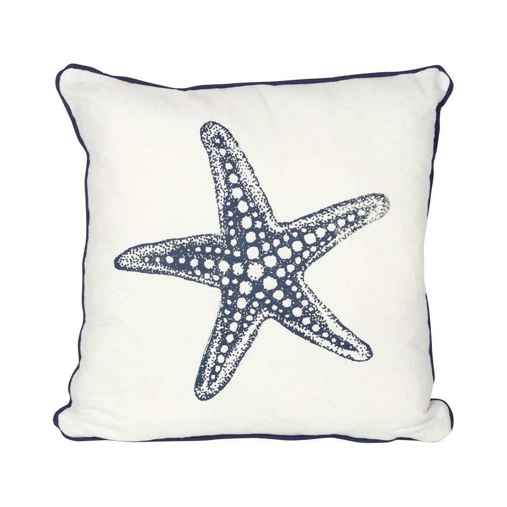 Freshen up your home d?cor with this gorgeous white cushion featuring a dark blue starfish illustration. A great nautical accent piece for a bedroom or living room. Product Dimensions: H33.5cm x W33.5cm x D10cm Packaged Dimensions: H33.5cm x W33.5cm x D4cm