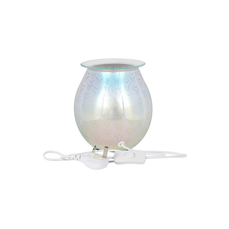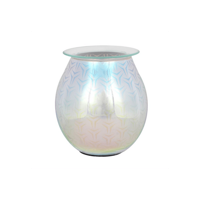 Compatible with both wax melts and fragrance oils, this chic electric oil burner lights up to showcase a stunning and colourful geometric design. Electrical safety tested. Class 2 equipment, European conformity, 230 voltage, frequency 50Hz, power 25W. Do not use near water. Do not leave unattended when in use. Product Dimensions: H14cm x W10cm x D10cm Packaged Dimensions: H22cm x W14.5cm x D15cm