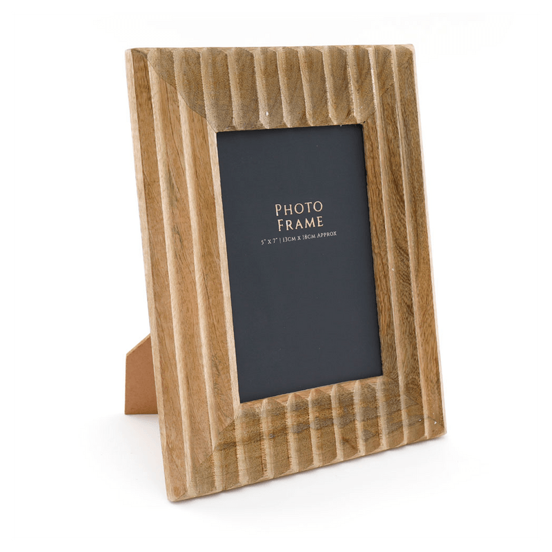 A lovely chunky, rustic looking photoframe in a ribbed mango wood design. Holds a 5"x7" (13cm x 18cm) photograph. Can be used portrait or landscape. Product Dimensions: H26.5cm x W21.5cm x D16cm Packaged Dimensions: H26.5cm x W21.5cm x D2cm