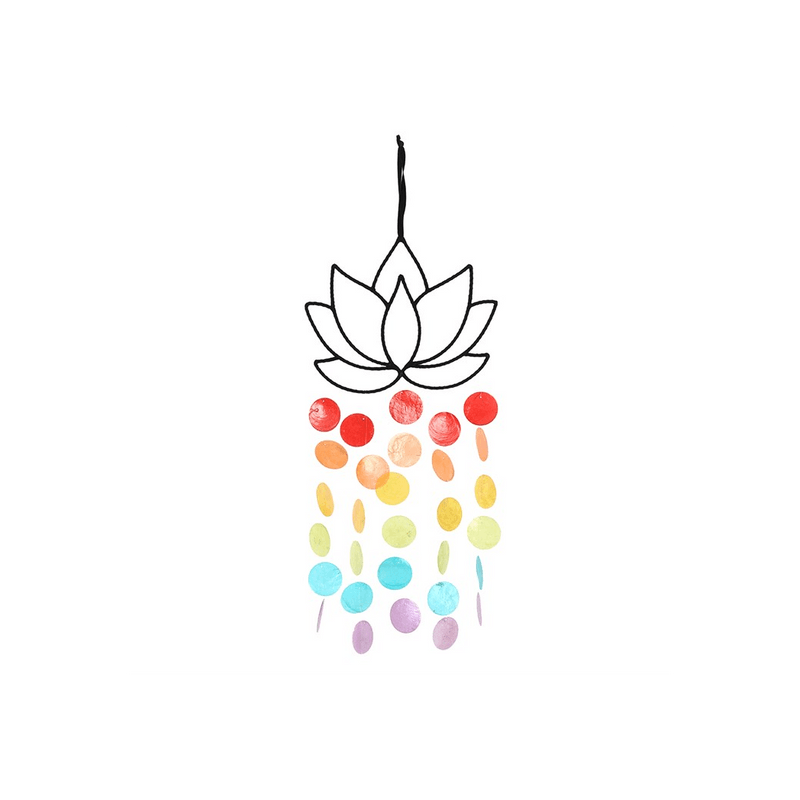 Brighten up a wall with this unique hanging decoration. A black lotus flower is accented by rainbow shell disks on this vibrant piece. Product Dimensions: H67cm x W25.5cm x D0.5cm Packaged Dimensions: H30cm x W25.5cm x D0.5cm