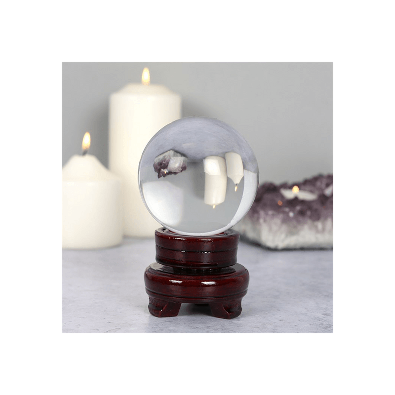 Look in to the future with this small 8cm diameter crystal ball. Small wooden stand included. Product Dimensions: H11.5cm x W8cm x D8cm Packaged Dimensions: H10cm x W19cm x D12cm