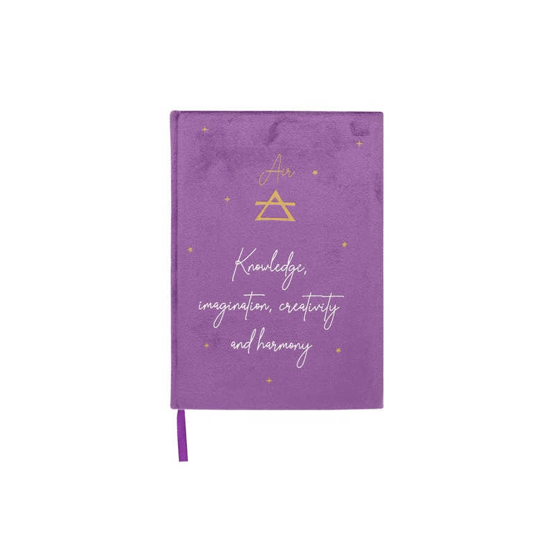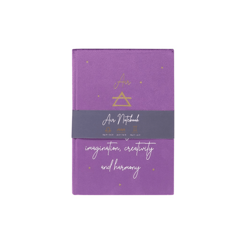 Gemini, Libra and Aquarius are the three zodiac signs represented by the air element. This purple velvet notebook features 'Knowledge, imagination, creativity and harmony' text on the front cover and a starry sky on the reverse, perfectly capturing the best traits of the zodiac air signs. Product Dimensions: H21cm x W15cm x D1.7cm Packaged Dimensions: H21cm x W15cm x D1.7cm