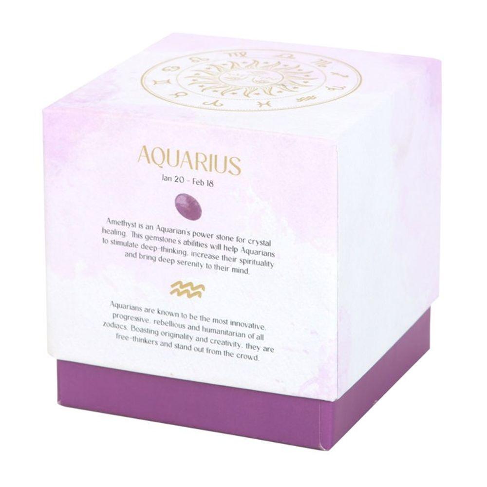 Enhance the energy and mindset of those born between January 20th and February 18th with this exquisite Aquarius zodiac candle. The fragrance of Bergamot & Mandarin is accompanied by amethyst crystal chips, which can be repurposed for various spiritual needs. The power of amethyst, known as the birthstone of Aquarians, can aid in deep thinking, increasing spirituality and promoting inner peace. The candle comes in a matching sliding box, making it an ideal gift and display. Made with paraffin wax and with an estimated burn time of 21 hours. Please use caution when burning and never leave unattended.