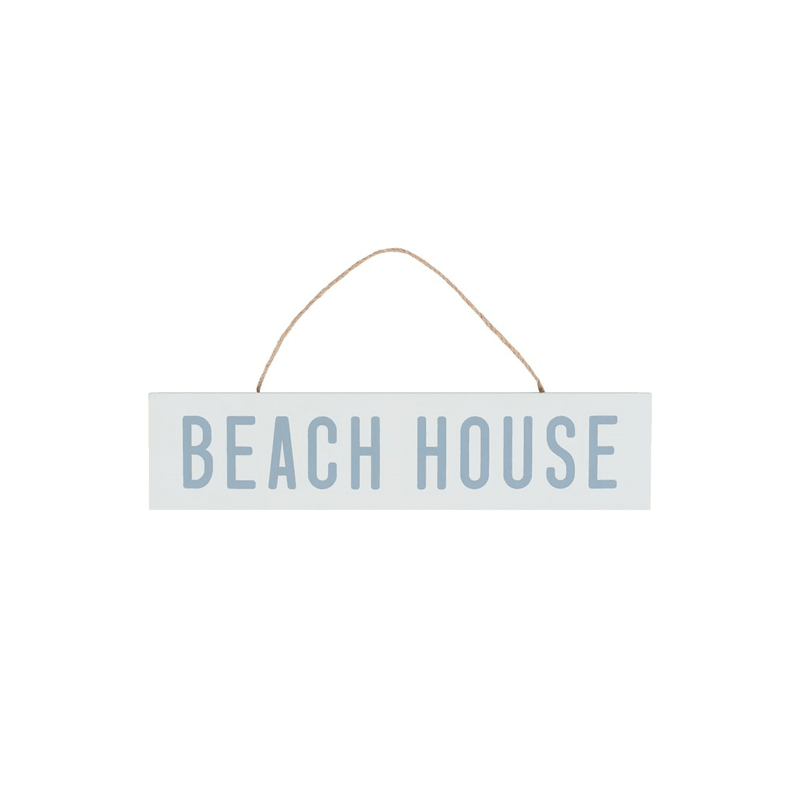 Hanging 'Beach House' sign which can be used as a standalone piece or used as part of a beach-inspired gallery feature wall. Product Dimensions: H15.5cm x W30cm x D0.8cm Packaged Dimensions: H7cm x W30cm x D0.8cm