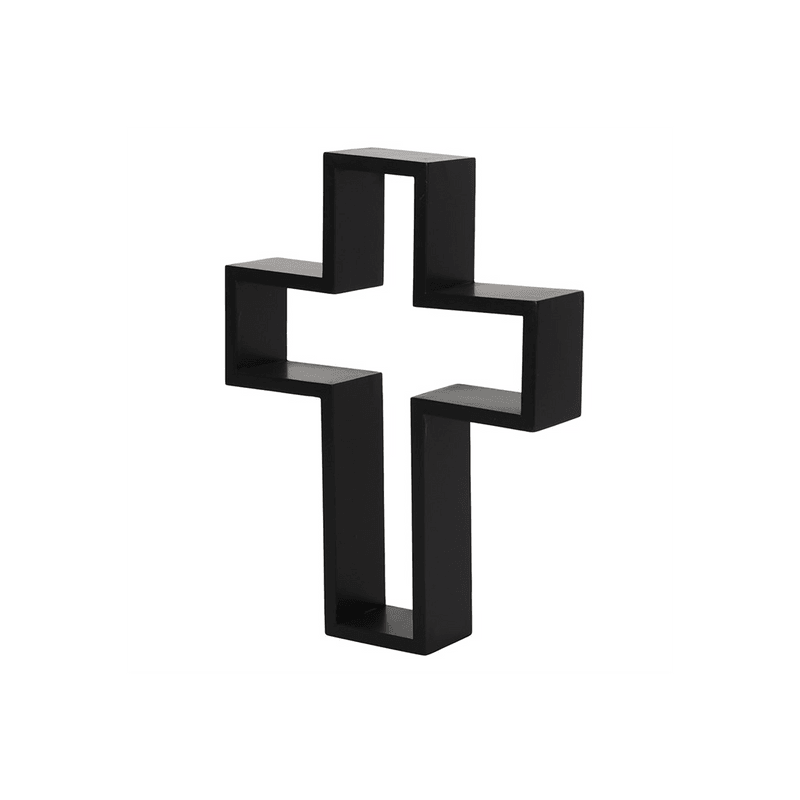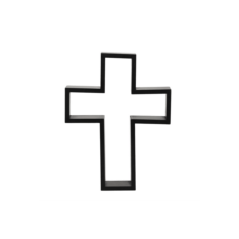 Make a statement on your wall space with this black crucifix shelf. Product Dimensions: H40cm x W30cm x D7cm Packaged Dimensions: H42cm x W32cm x D9cm