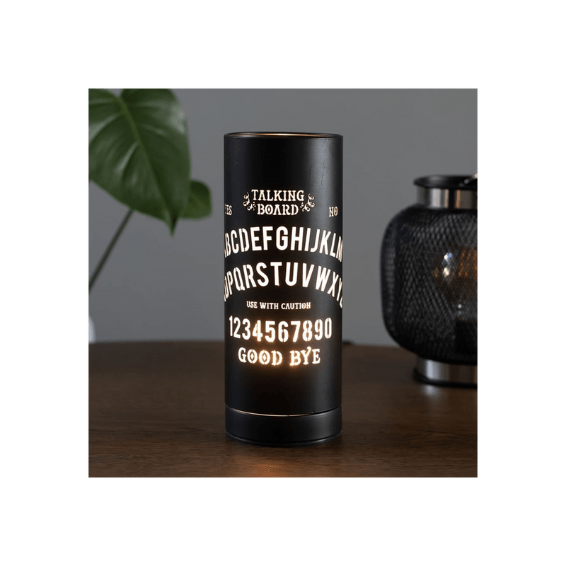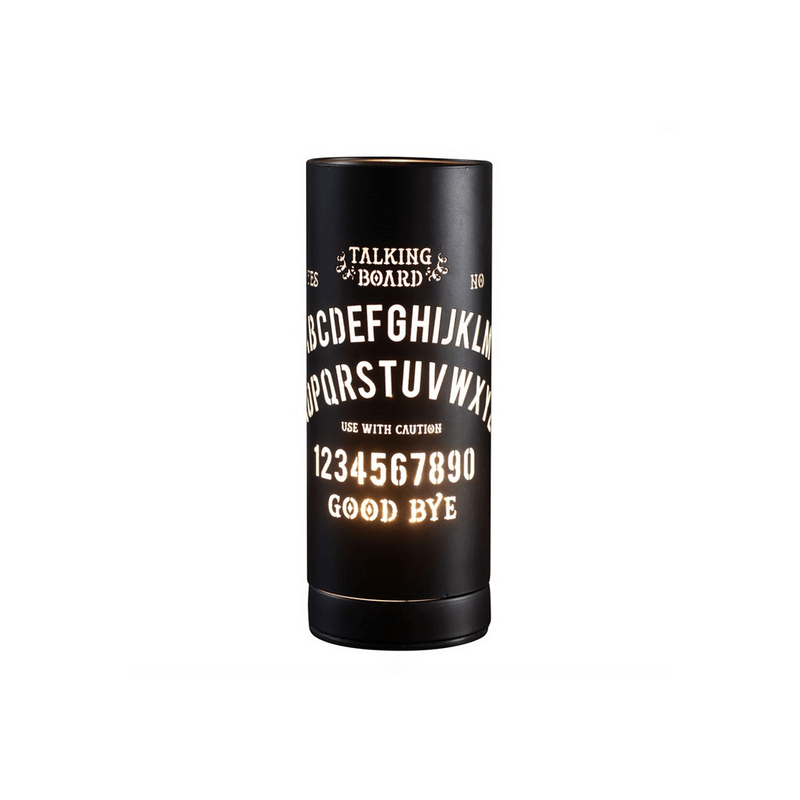 Scent the home with this black aroma touch lamp featuring a talking board design which is illuminated when the lamp is in use. To switch the lamp on and activate your favourite scent of fragrance oil or wax melt, simply touch the lamp to turn it on and touch again to turn it off. USB power cablePlug-in AC adaptor not includedCompatible with 5V 2A or 5V 3A AC adapters. Product Dimensions: H25.5cm x W10cm x D10cm Packaged Dimensions: H27.8cm x W12.5cm x D12.5cm