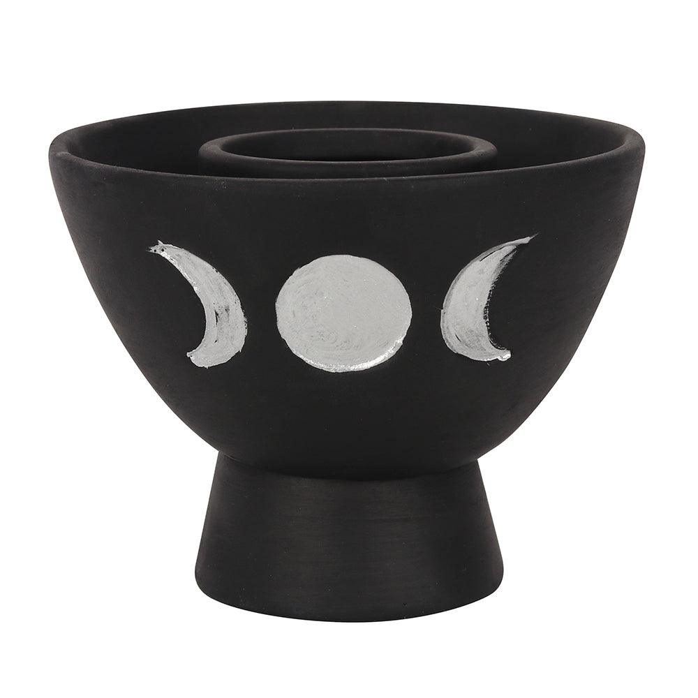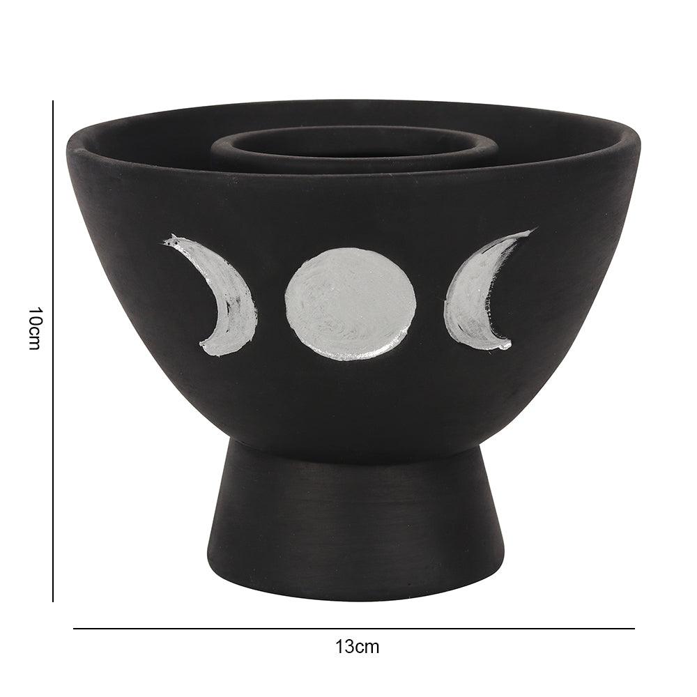 Terracotta smudge bowl featuring a beautiful triple moon design detailed in white. Smudge bowls are used for burning herbs or holding lit smudge sticks whilst they burn. Product Dimensions: H10cm x W13cm x D13cm Packaged Dimensions: H14cm x W16cm x D16cm
