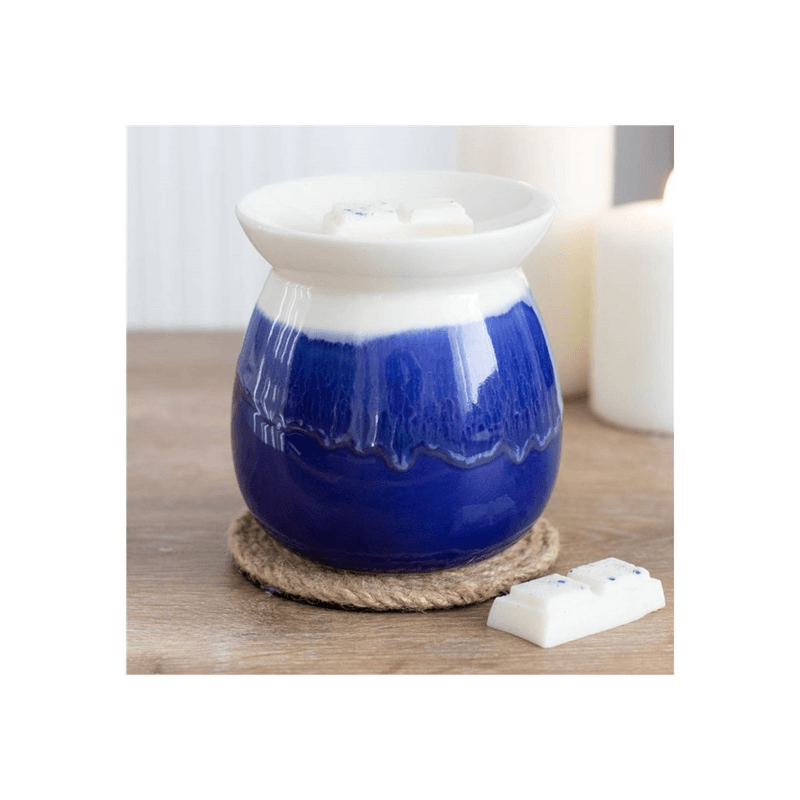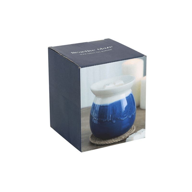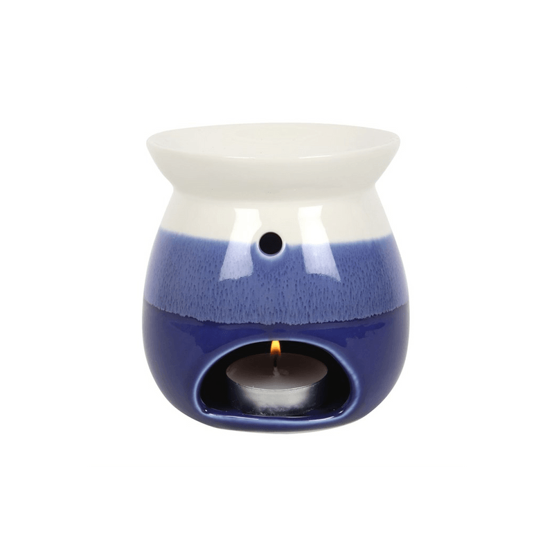 Stunning blue and white reactive glaze oil burner which will bring a fresh and contemporary look to any home. Product Dimensions: H11.5cm x W11cm x D11cm Packaged Dimensions: H15cm x W13cm x D13cm