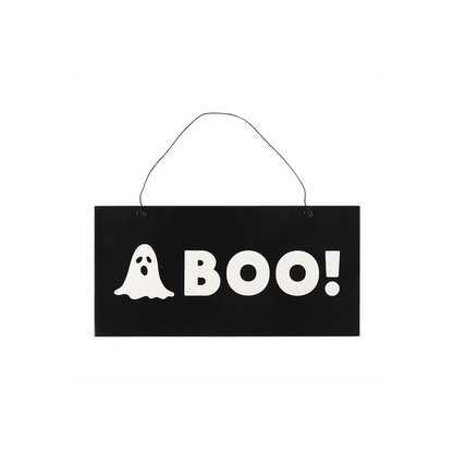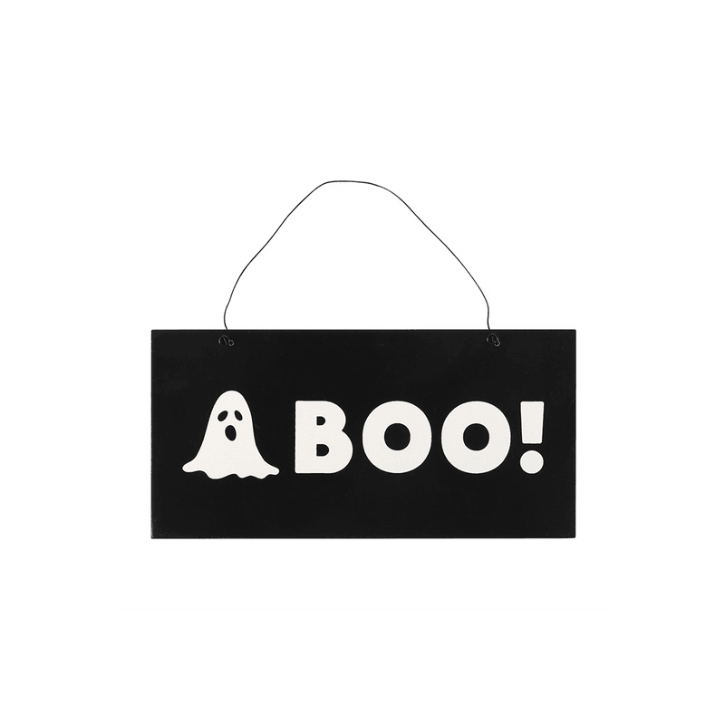 Hanging 'Boo' ghost sign for decorating at Halloween. Why not use it outdoors as part of a Halloween themed wreath or hang it up indoors as part of a feature wall with other decorations for maximum impact.Product Dimensions: H10cm x W20cm x D1cm Packaged Dimensions: H10cm x W20cm x D1cm