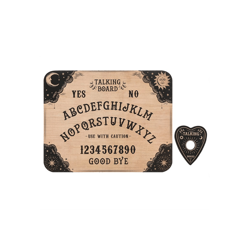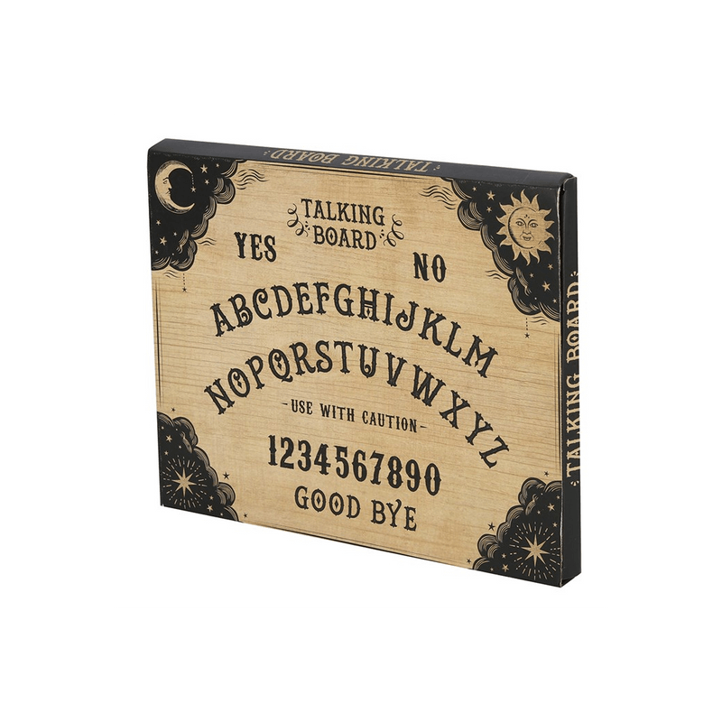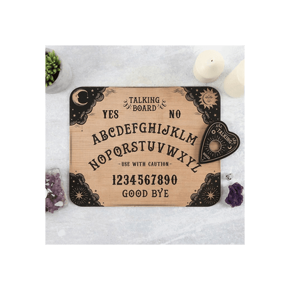 A classic style talking board designed which comes with a matching planchette for spiritual readings. This spirit board is designed for light-hearted entertainment and is not a professional tool for making spiritual connections. Product Dimensions: H1.2cm x W39cm x D31cm Packaged Dimensions: H2.5cm x W40cm x D31.5cm