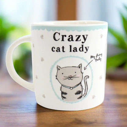 Crazy Cat Lady Boxed Mug. The Crazy Cat Lady Boxed Mug offers a whimsical addition to your morning routine. Featuring unique designs and sturdy construction, this mug is perfect for enjoying your favorite beverage while embracing your feline-loving side.