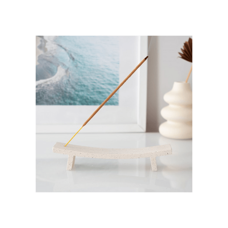 This modern incense stick holder and ash catcher is both simple in design and eye-catching in style. Product Dimensions: H4cm x W19cm x D3.5cm Packaged Dimensions: H21.5cm x W6cm x D6cm
