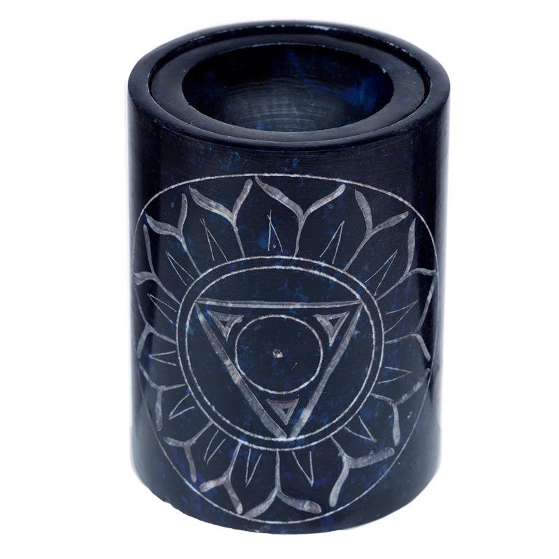 Dark Blue Soapstone Carved Chakra Oil Burner