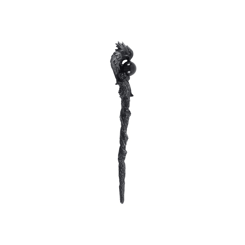 A wand for the dark witches and wizards, this special style features a red-eyed raven perched over an inky, black sphere atop a twisting, moulded branch. At 24cms long, this resin wand is the perfect size for casting spells. Handle with care. Product Dimensions: H24cm x W3cm x D3cm Packaged Dimensions: H27.5cm x W6.5cm x D6.5cm