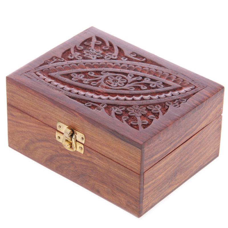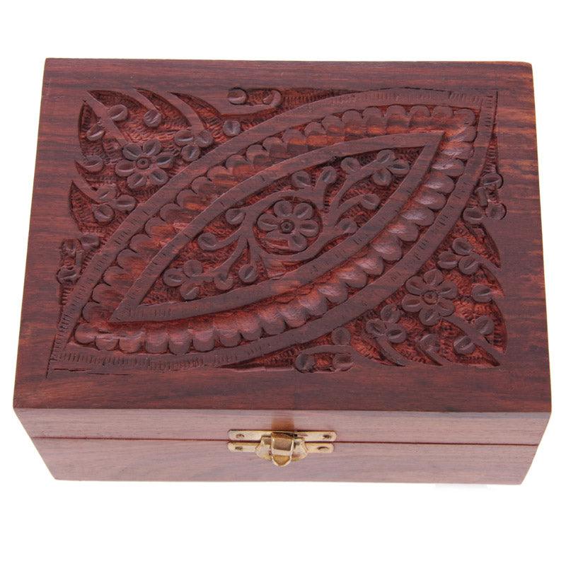 Decorative Sheesham Wood Carved Compartment Box Medium