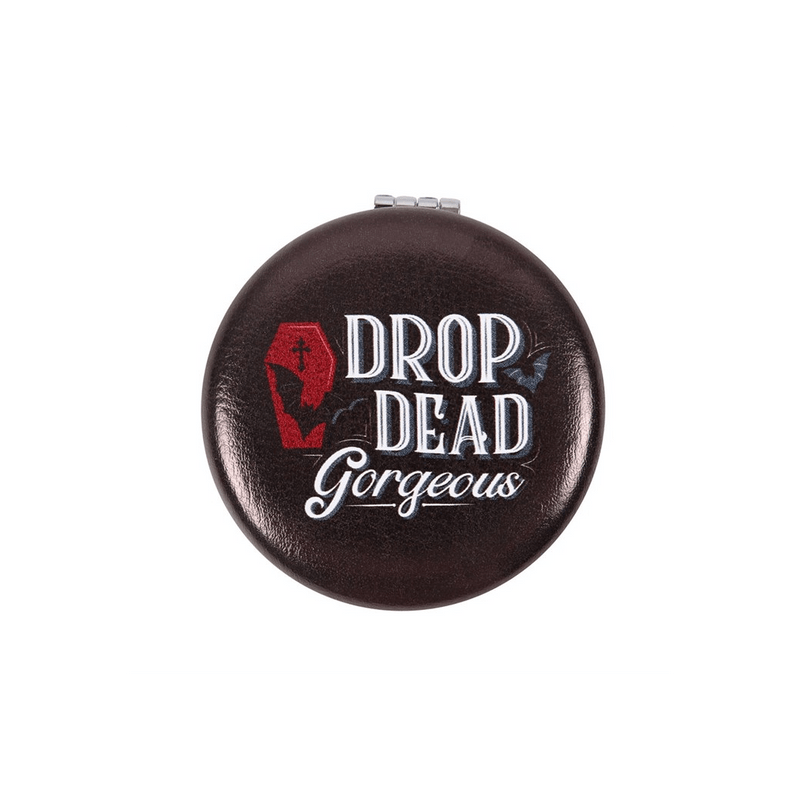 Lipstick on your fangs? This Drop Dead Gorgeous compact mirror is the perfect size for keeping in your hearse or handbag for quick touch-ups and shaking the bats from your hair. Product Dimensions: H2cm x W6.5cm x D6.5cm Packaged Dimensions: H2cm x W6.5cm x D6.5cm