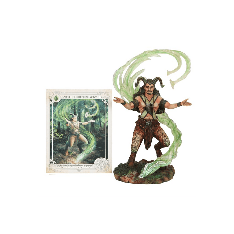 Based on the ‘Elemental Magic’ range of wizard and sorceress artwork by Anne Stokes, this high-quality collectible figurine features stunning painted details that perfectly capture the movement and energy of the Earth Elemental Wizard. Intricately sculpted and cast in resin, this horned satyr conjures curls of earth magic in the form of translucent green vines. Officially licensed Anne Stokes product.