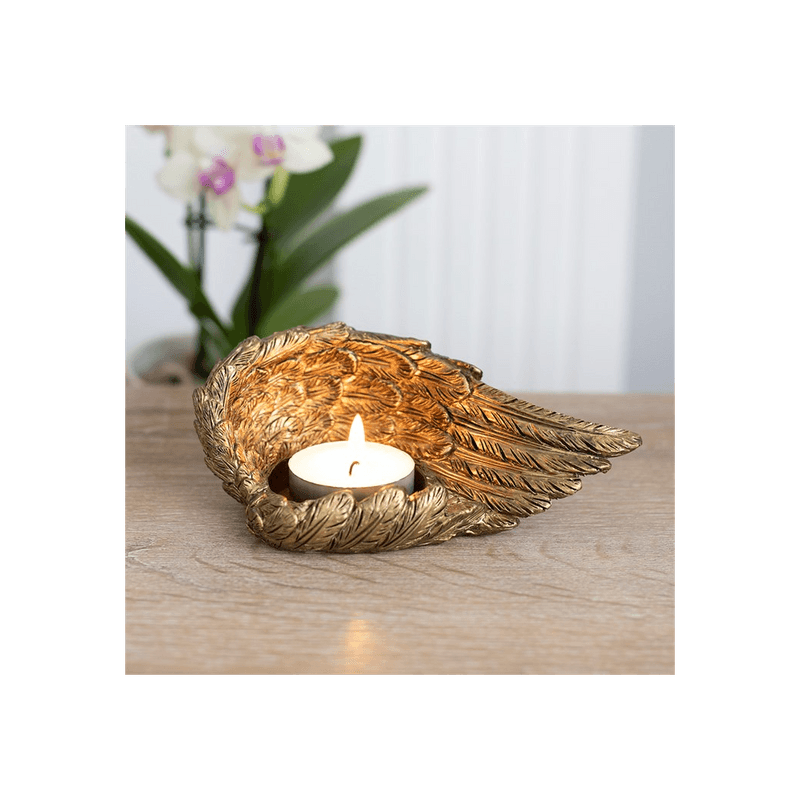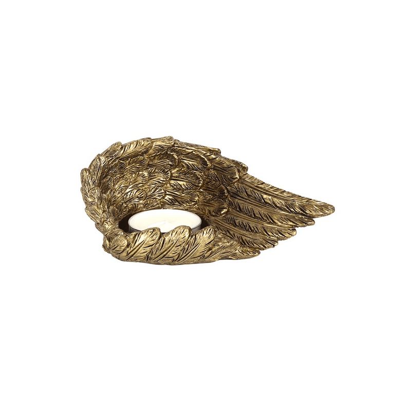 A beautiful, lowered angel wing tealight holder in an antique gold finish. Product Dimensions: H5cm x W13.5cm x D8cm Packaged Dimensions: H6.5cm x W28.5cm x D18.5cm