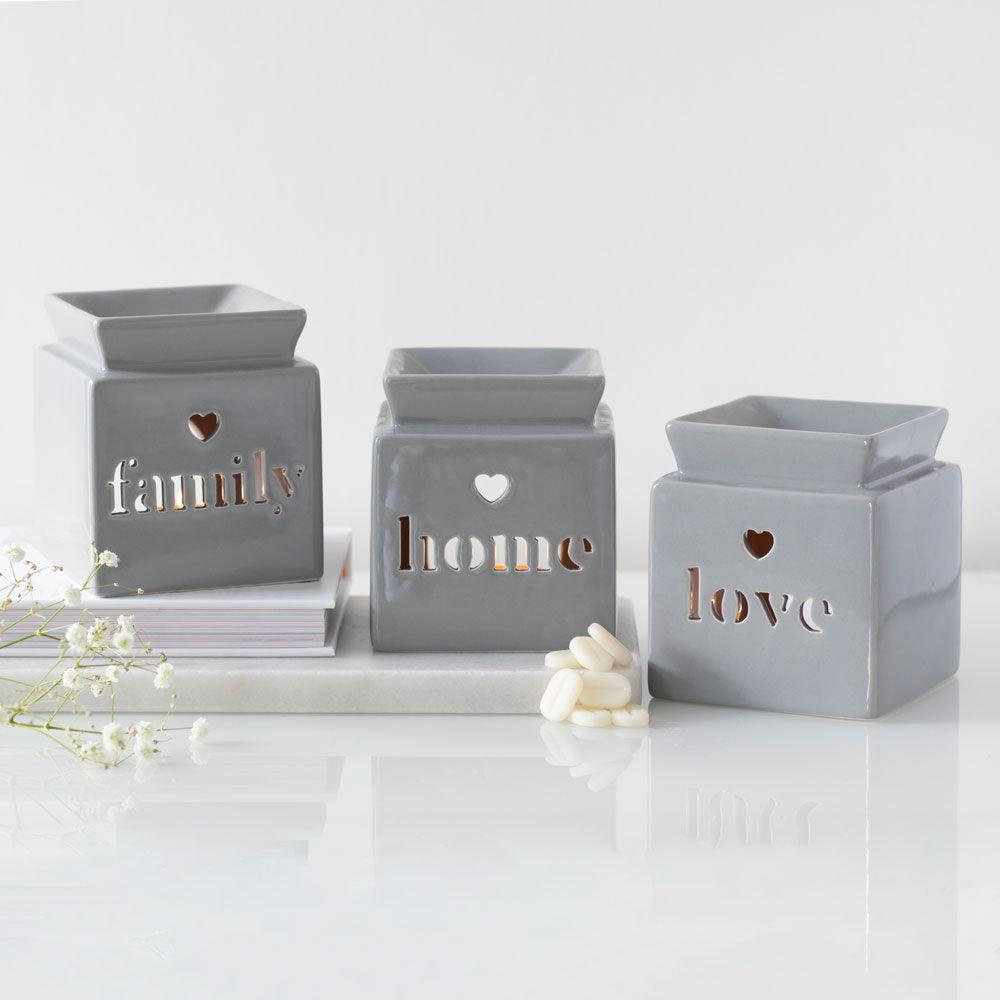 - Light grey ceramic oil burner in contemporary design