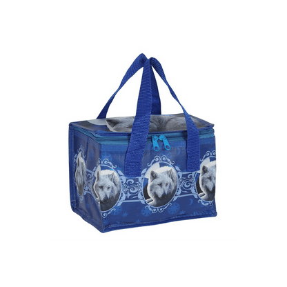 This unique lunch bag has been designed by Lisa Parker and features her striking 'Guardian of the North' wolf artwork. This item is helping to reduce landfill waste - 40% of the base material of this item is made from recycled plastic. Product Dimensions: H16cm x W21cm x D13cm Packaged Dimensions: H5cm x W21cm x D13cm