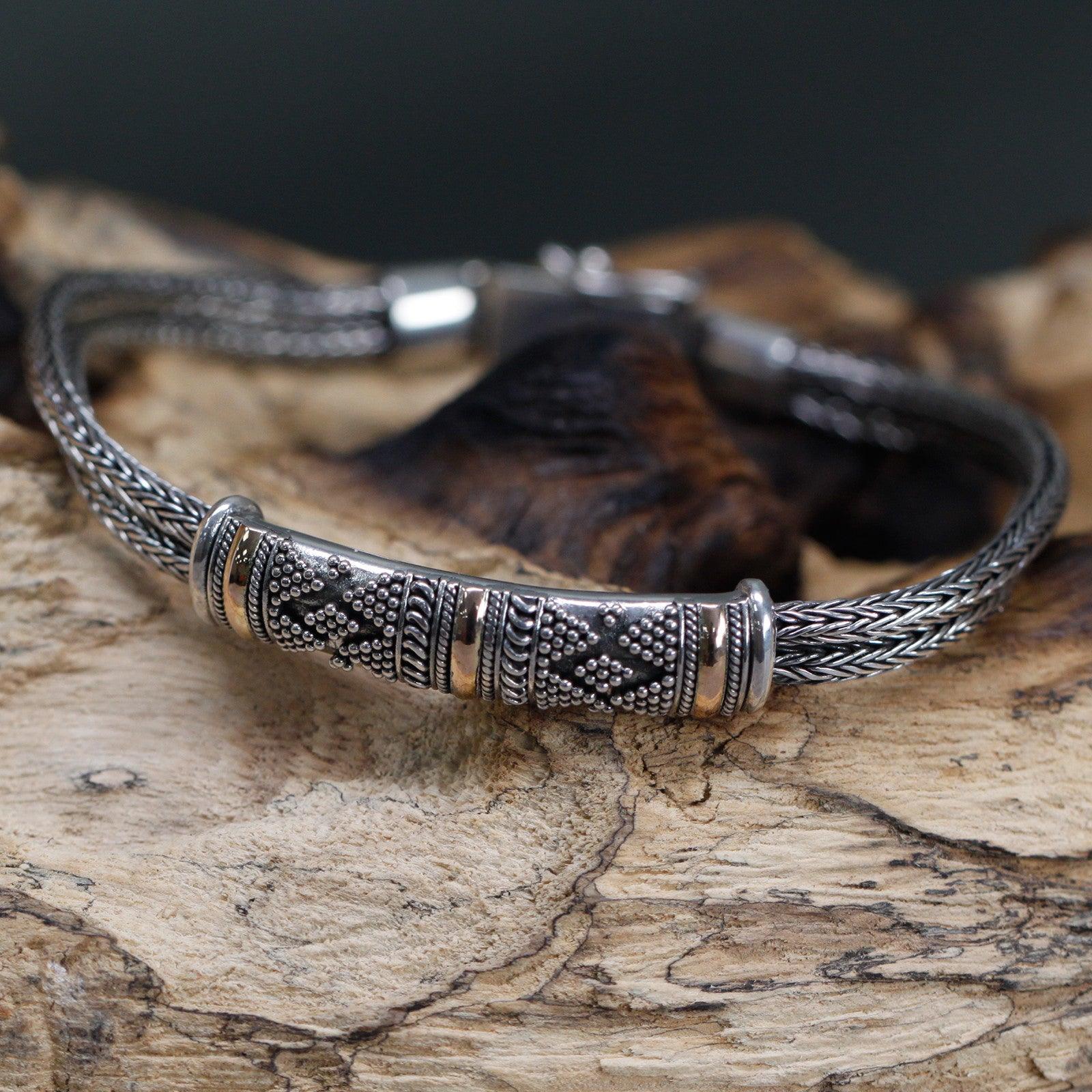 Handmade Bali Jewellery Silver & Gold Bracelet - Unisex Single Chain