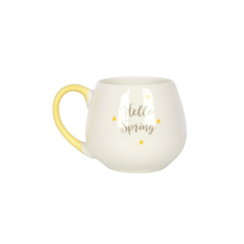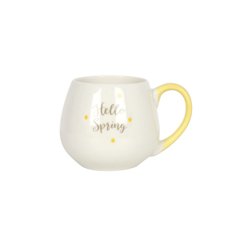 Welcome in the spring season with this rounded mug featuring the wording 'Hello Spring' along with sweet yellow flower details and a yellow painted handle. Dishwasher and microwave safe. Product Dimensions: H9.4cm x W13.6cm x D10.7cm Packaged Dimensions: H10.2cm x W13.4cm x D11cm