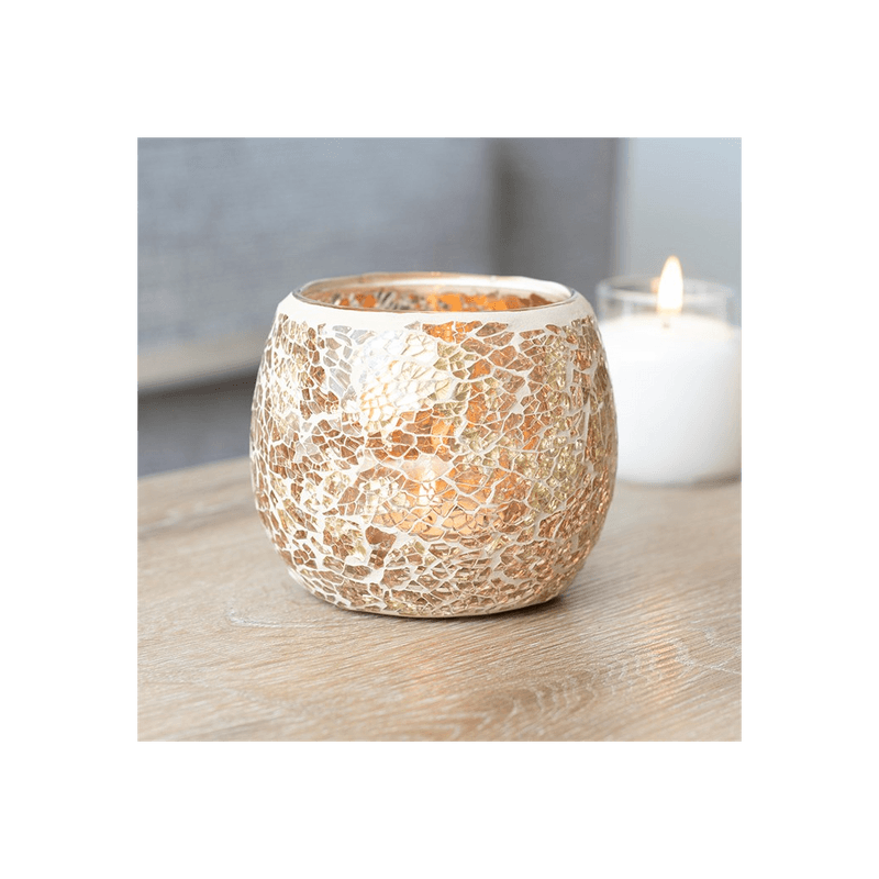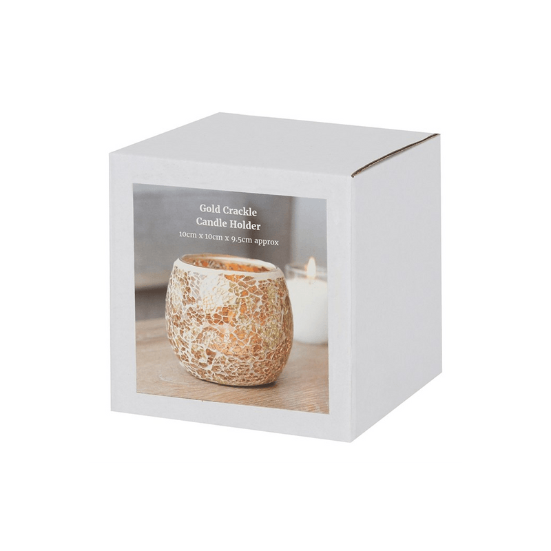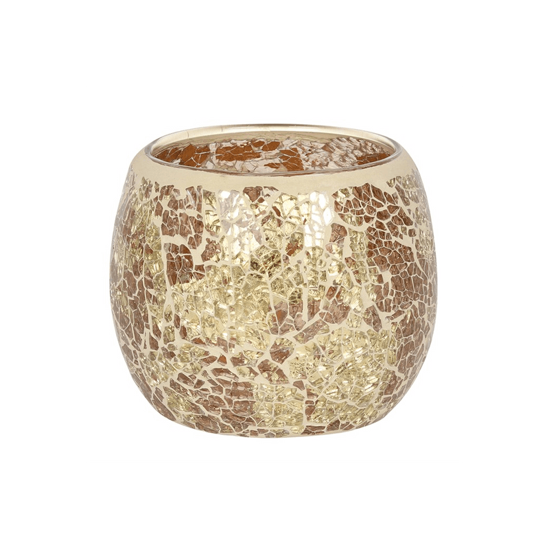 Add a touch of sparkle to any room with this pretty golden candle holder. Whether it's capturing the sunlight or it's offering a subtle glow from a lit candle within during the evening, this piece looks simply beautiful at any time of day . Product Dimensions: H9.5cm x W10cm x D10cm Packaged Dimensions: H12.5cm x W12.5cm x D12.5cm