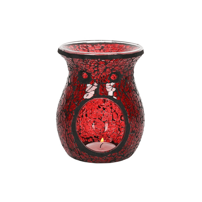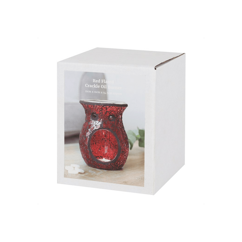 Beautiful large oil burner with a red crackle effect. May also be used as a wax melt burner. This popular item is also available in other oil burner designs and as matching candle holders. Product Dimensions: H14cm x W11cm x D11cm Packaged Dimensions: H16cm x W12.5cm x D12.5cm