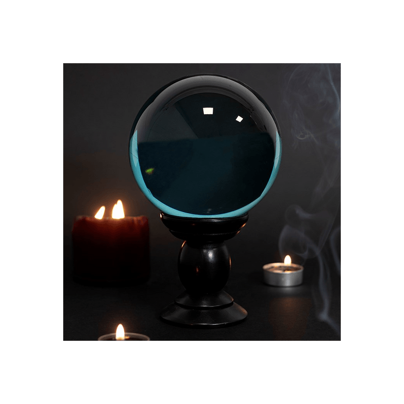 This large, teal blue crystal ball is not only a powerful tool in fortune telling and scrying, but also makes an eye-catching piece of d?cor. Whether used for divination or a table accessory at Halloween, this crystal ball is sure to be a conversation piece. Comes on black wooden stand. Keep out of direct sunlight. Product Dimensions: H20cm x W13cm x D13cm Packaged Dimensions: H13cm x W14cm x D20cm