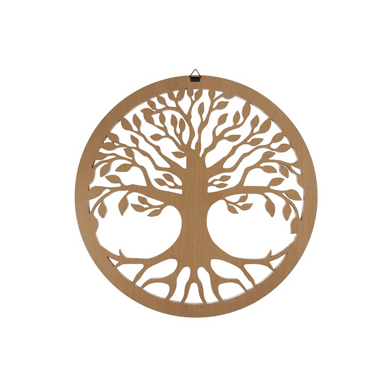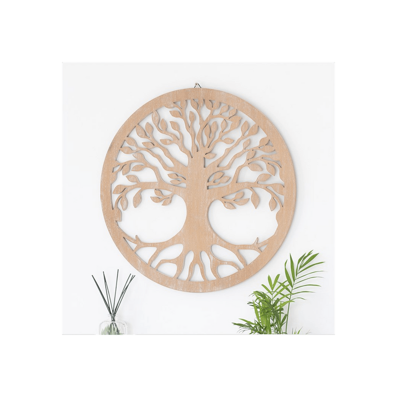 This large wall decoration features a detailed, cut out silhouette of a Tree of Life design that is sure to create a focal point in any contemporary home. Hanger on back. 60cm diameter. Product Dimensions: H60cm x W60cm x D1cm Packaged Dimensions: H61cm x W61cm x D2.5cm