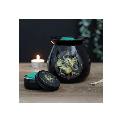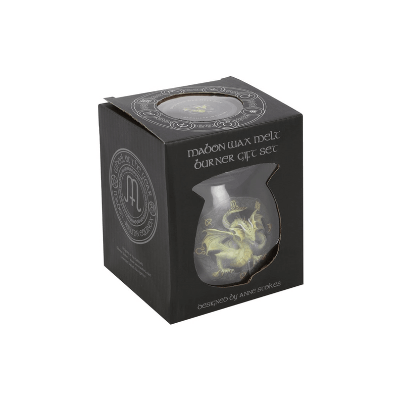 This beautifully presented oil burner and apple scented wax melt gift set features the 'Mabon' dragon design printed in high quality colour. Part of the 'Dragons of the Sabbat' artwork series by fantasy artist Anne Stokes.Product Dimensions: H11.5cm x W10cm x D10cm Packaged Dimensions: H14.5cm x W11cm x D11cm