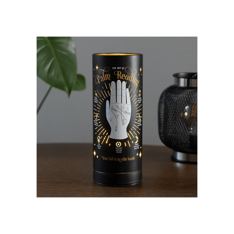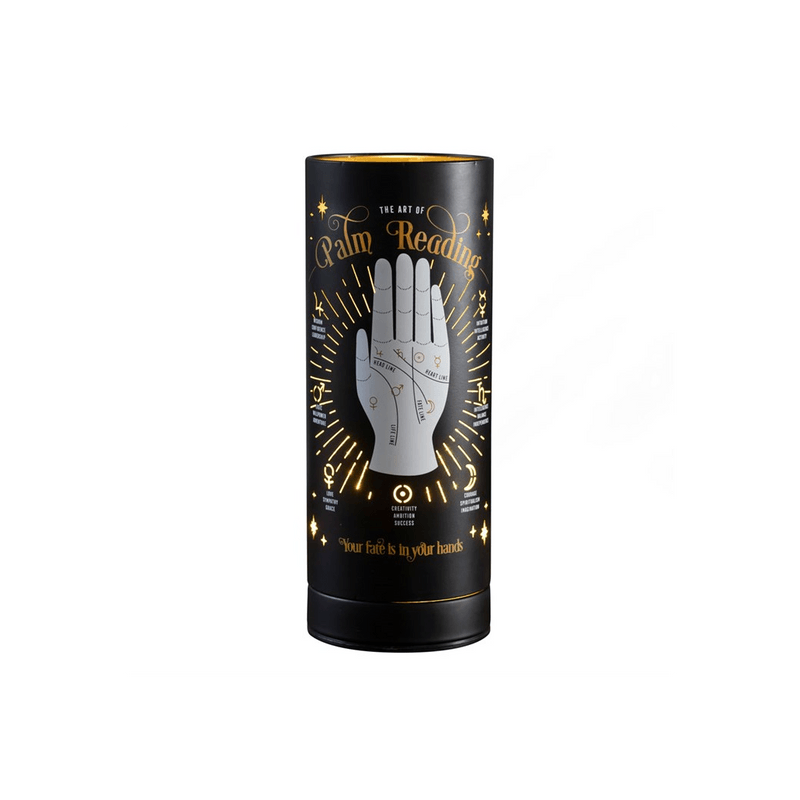 Scent the home with this black aroma touch lamp featuring a palm reading design which is illuminated when the lamp is in use. To switch the lamp on and activate your favourite scent of fragrance oil or wax melt, simply touch the lamp to turn it on and touch again to turn it off. USB power cablePlug-in AC adaptor not includedCompatible with 5V 2A or 5V 3A AC adapters. Product Dimensions: H25.5cm x W10cm x D10cm Packaged Dimensions: H27.8cm x W12.5cm x D12.5cm