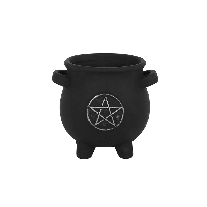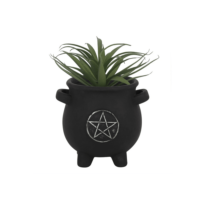 This black terracotta cauldron pot with silver pentagram design makes a unique and witch-approved way to grow plants and flowers in the home. This adoable plant pot is the perfect size for sunny windowsills and ledges. Can also be used to store pens and pencils on a gothic desk space. Product Dimensions: H12cm x W13cm x D11.5cm Packaged Dimensions: H14.5cm x W13.5cm x D13.5cm