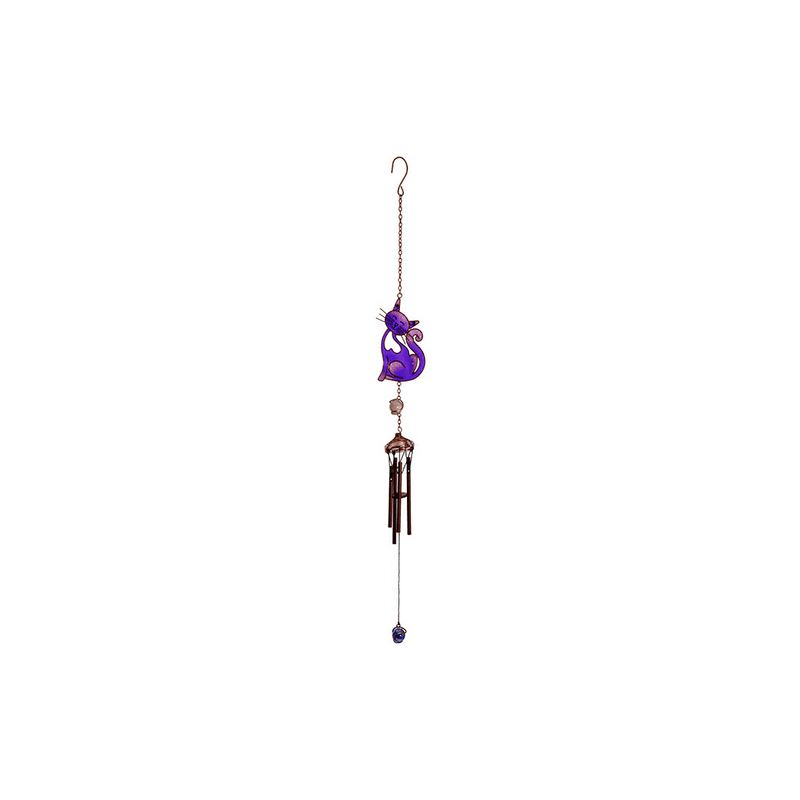 A beautiful brightly coloured wind chime in a purple cat design. Suitable for indoor and outdoor use. Product Dimensions: H58cm x W7.5cm x D4cm Packaged Dimensions: H12cm x W8cm x D3.5cm