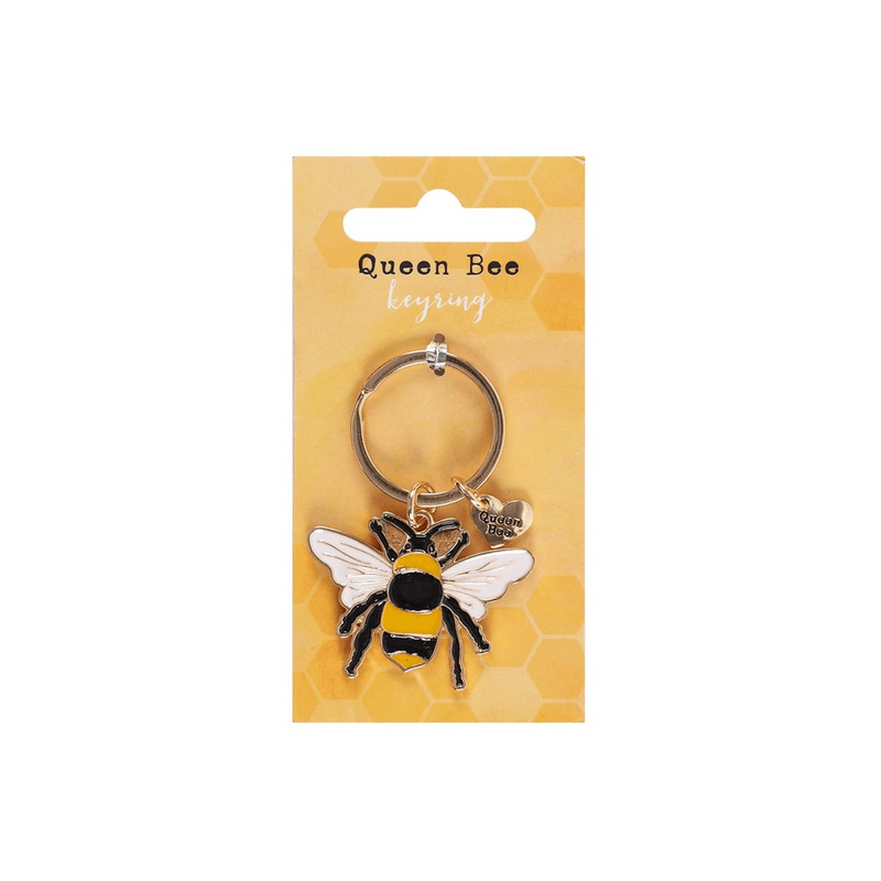 This bright enamel bee keyring is sure to help you keep track of your keys whether they're hanging up at home or lost in the depths of your handbag. The keyring also features a heart-shaped charm with the words 'Queen Bee'. A great gift for a forgetful friend or Christmas stocking filler. Product Dimensions: H6.5cm x W4.5cm x D0.2cm Packaged Dimensions: H11cm x W5.5cm x D0.2cm