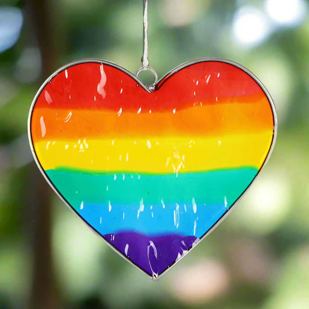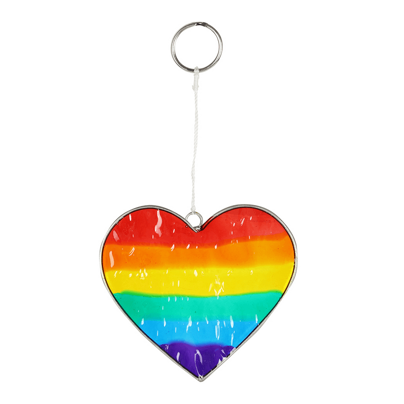 Brighten up your home with this mini rainbow heart suncatcher which casts beautiful colours around it when caught in the light. Product Dimensions: H13.5cm x W7.7cm x D0.2cm Packaged Dimensions: H7cm x W8cm x D0.5cm