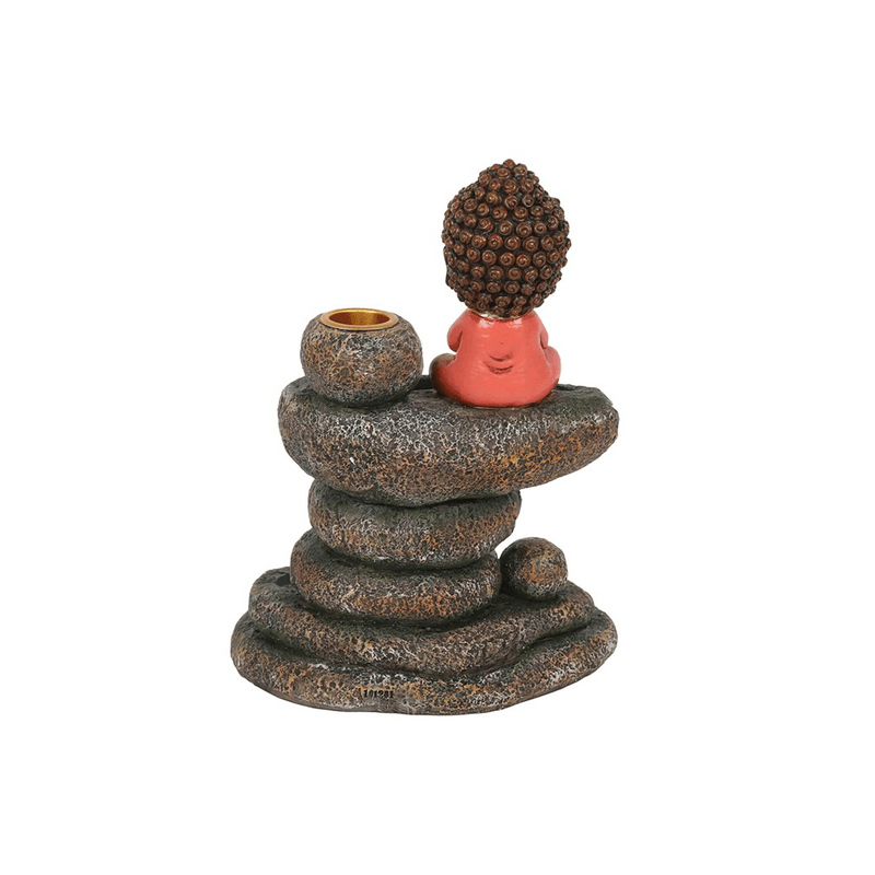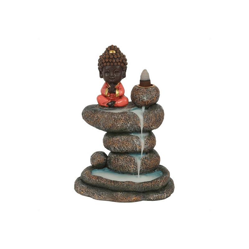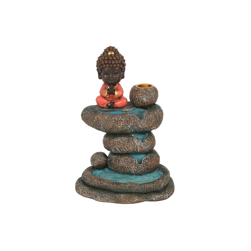 A cheerful, meditating Buddha sits atop a stacked rock pond on this resin backflow incense cone burner. Simply place a backflow incense cone on the top rock and watch as water-like smoke travels from pond to pond. Product Dimensions: H18cm x W13cm x D10.5cm Packaged Dimensions: H22cm x W16.5cm x D13.5cm