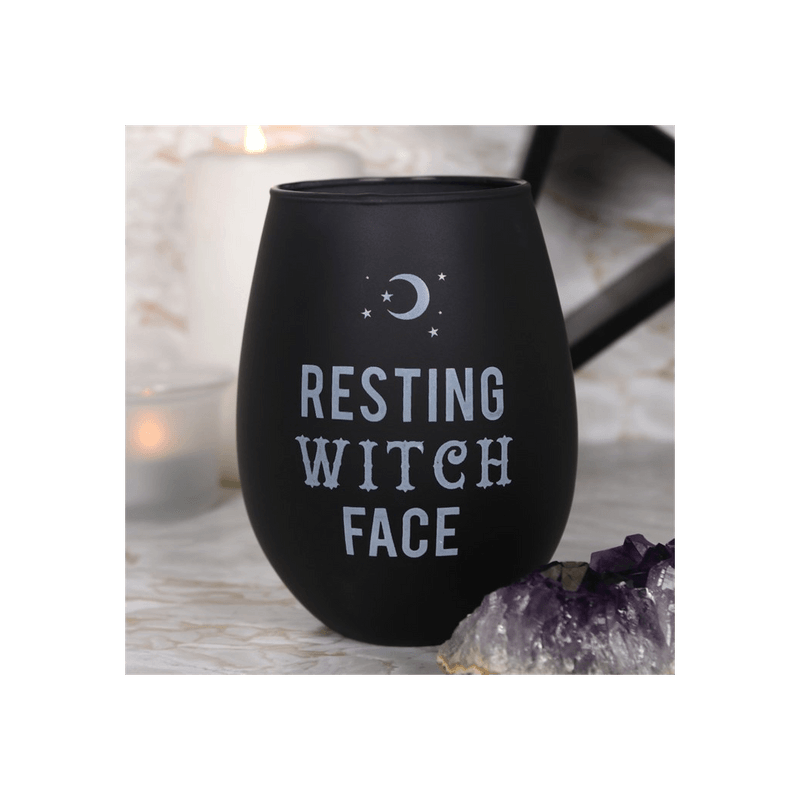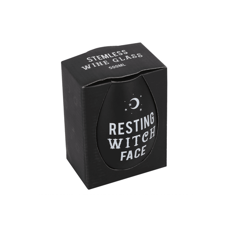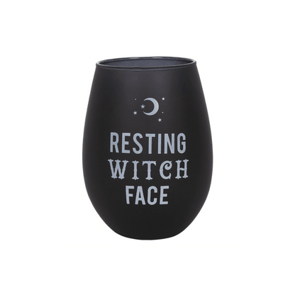 This frosted black stemless wineglass features the words 'Resting Witch Face' and is part of our exclusive Black Magic collection designed for sassy and strong women. The glass comes presented in a matching cardboard box. Not suitable for dishwasher or microwave use. Product Dimensions: H12cm x W9.5cm x D9.5cm Packaged Dimensions: H13cm x W10cm x D10cm
