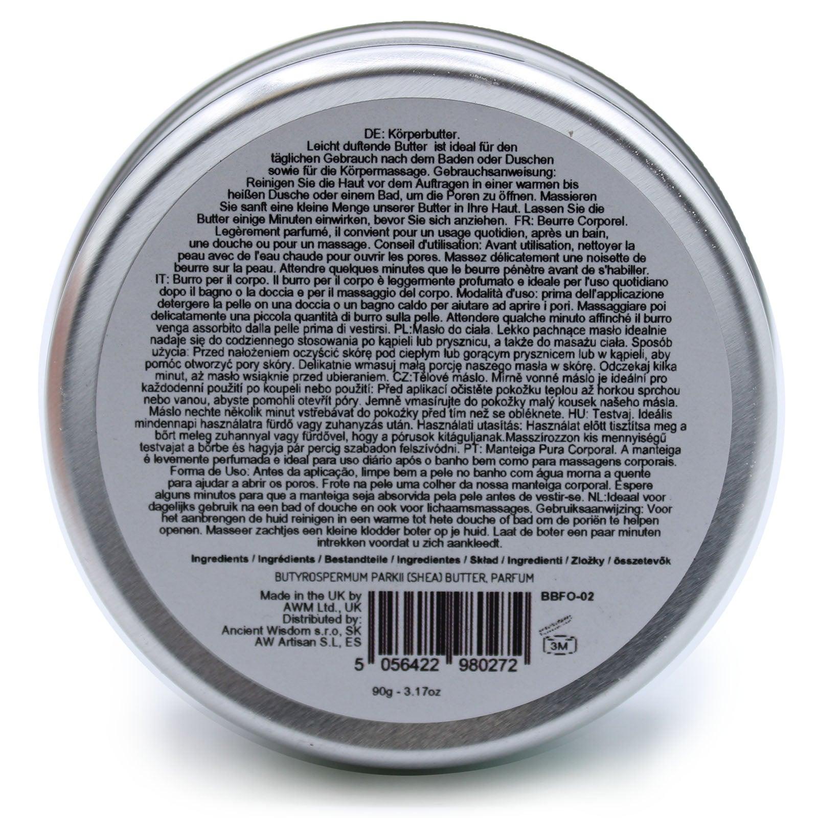 Direction for use: Before application cleanse skin in warm-to-hot shower or bath to help open pores. Gently massage a small dollop of our butter into skin. Allow a few minutes for the butter to sink in before getting dressed.