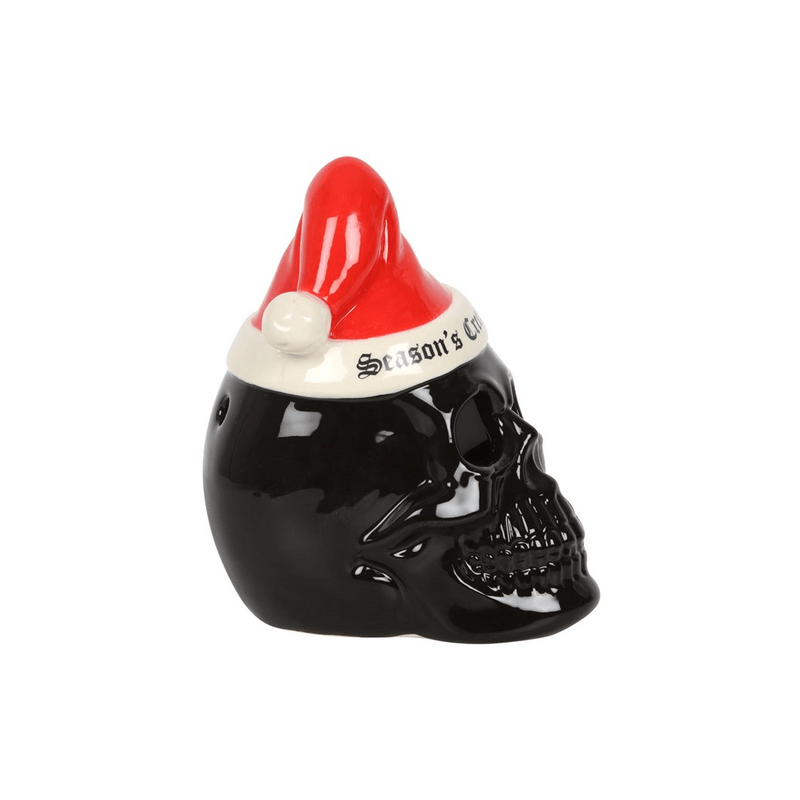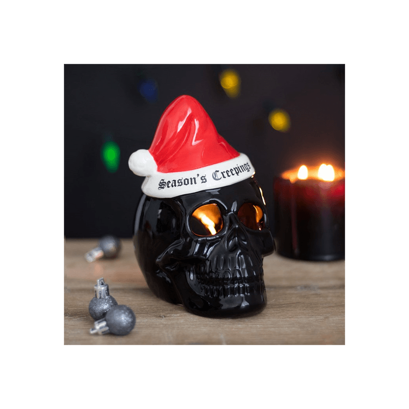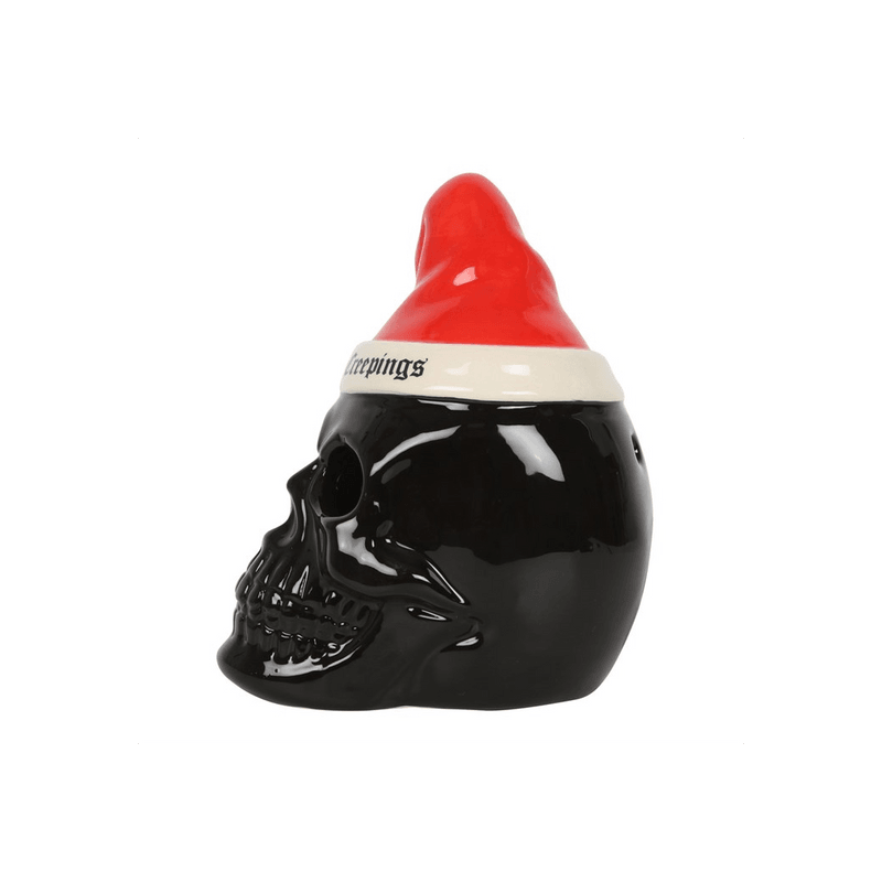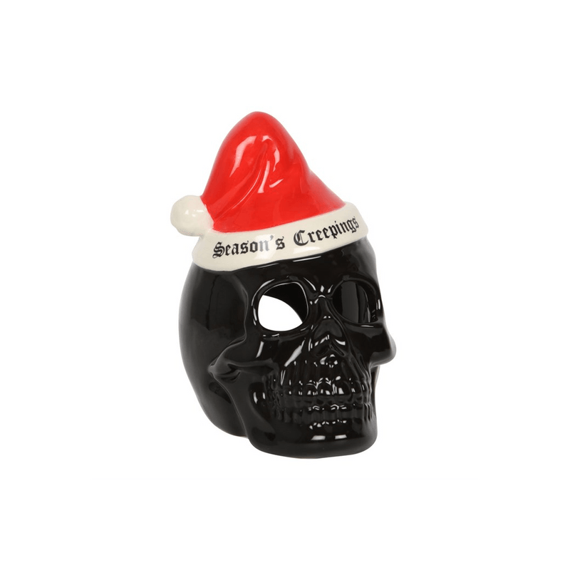 Tis the season for all things festive, even for those a little less traditional than most. Delight alternative customers with this gothic tealight holder featuring a black skull ready for Christmas with a 'Season's Creepings' Santa hat. Product Dimensions: H16cm x W10cm x D13.5cm Packaged Dimensions: H19cm x W16.5cm x D13.5cm