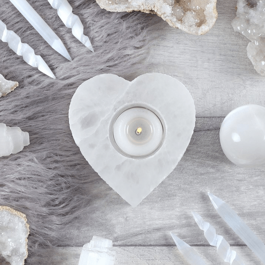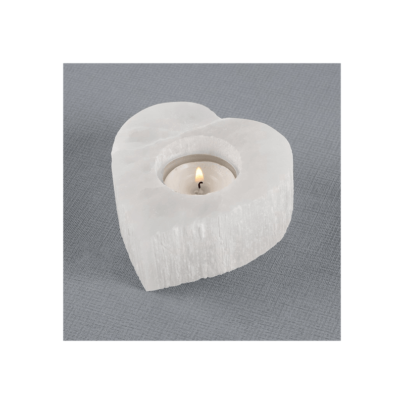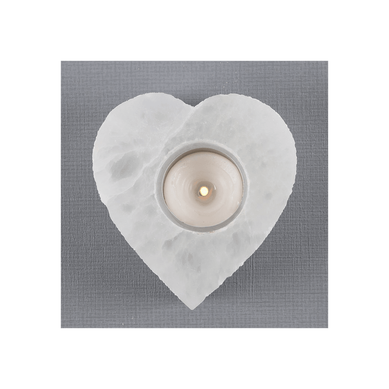 This beautiful selenite heart-shaped candle holder offers a stunning way to decorate any room in the home. Selenite is a crystal associated with cleansing and purifying energy and burning a white tealight in this holder is the perfect way to create a clear emotional ambience. Product Dimensions: H3.5cm x W10.5cm x D10cm Packaged Dimensions: H3.5cm x W10.5cm x D10cm