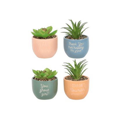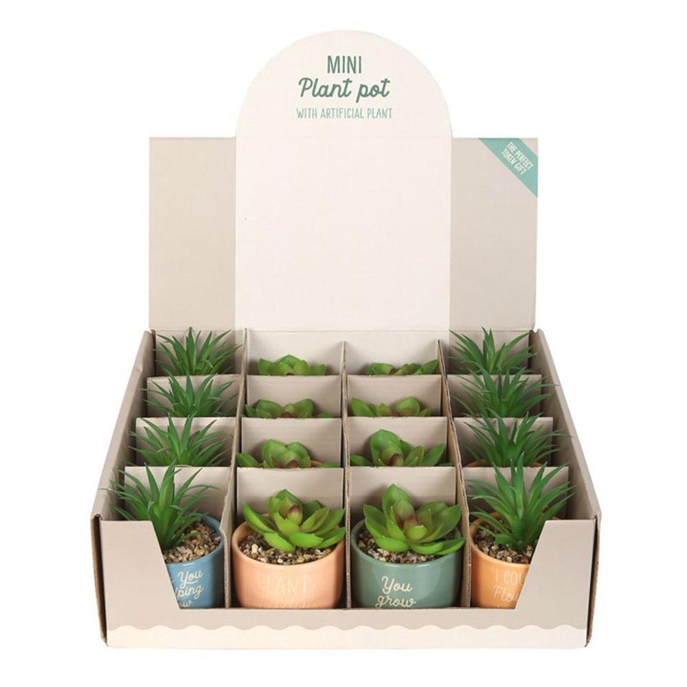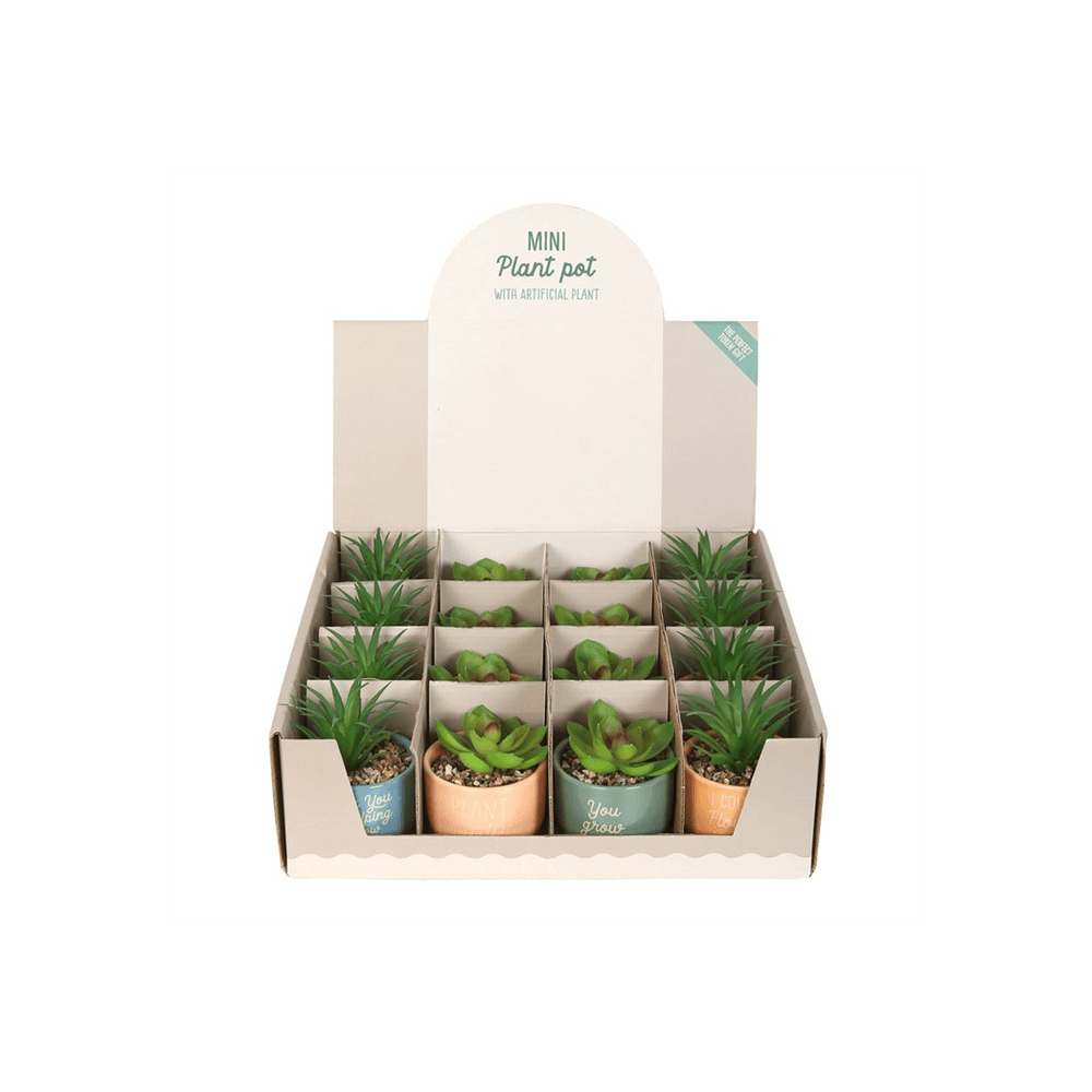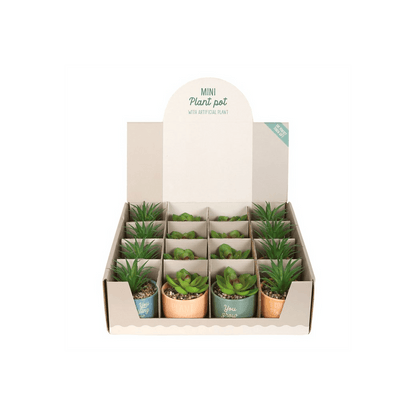 Set of 16 Mini Plant Pots with Artificial Plant