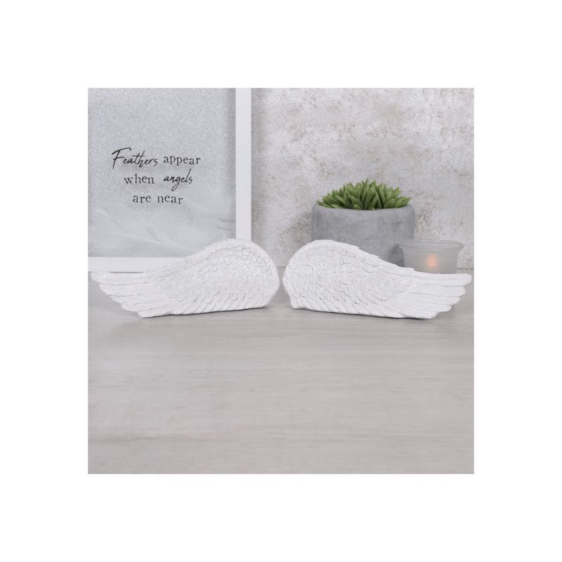 A pair of stunning white angel wing ornaments. Each wing is finished with clear glitter flakes which looks beautiful when illuminated in the light. Product Dimensions: H5cm x W16.5cm x D6cm Packaged Dimensions: H7cm x W17cm x D8cm